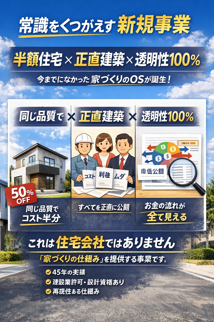 家は高くするものじゃない。正直に建てる。半額の理由はムダをなくしただけ。 13件のビュー