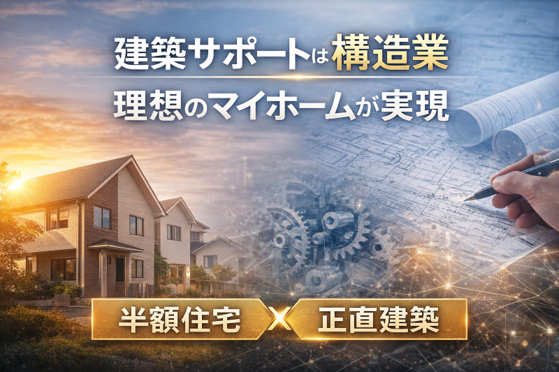 0円住宅 半額住宅 建築サポート TOP 半額住宅は「安い家」ではありません ― ムダを省いて実現する、高品質な家づくり ― 「半額住宅」と聞くと、 安い、品質が低い、仕様を削った家、 そんなイメージを持たれることが